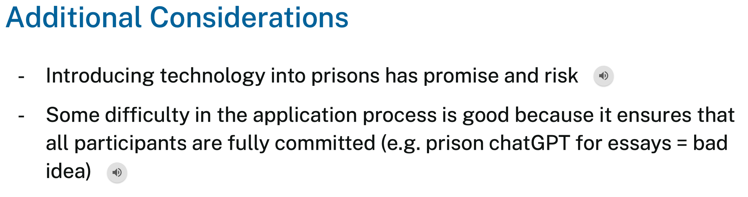 For example, interviews revealed that time off of one’s sentence, higher pay, and transferable skills are qualities of a program that users value, so programs with those qualities will be highlighted.